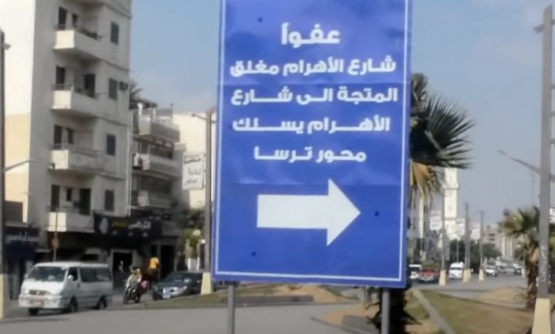 التحويلة المرورية الثانية البديلة لغلق شارع الهرم بداية من منطقة مشعل