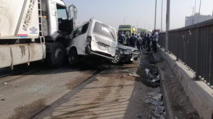 وقع حادث تصادم 7 سيارات على الطريق الدائرى، وتبين اصطدام تريلا و6 سيارات أعلى الدائرى في الاتجاه من طريق الواحات الصحراوى وصولا الى مناطق الرماية والمريوطية.