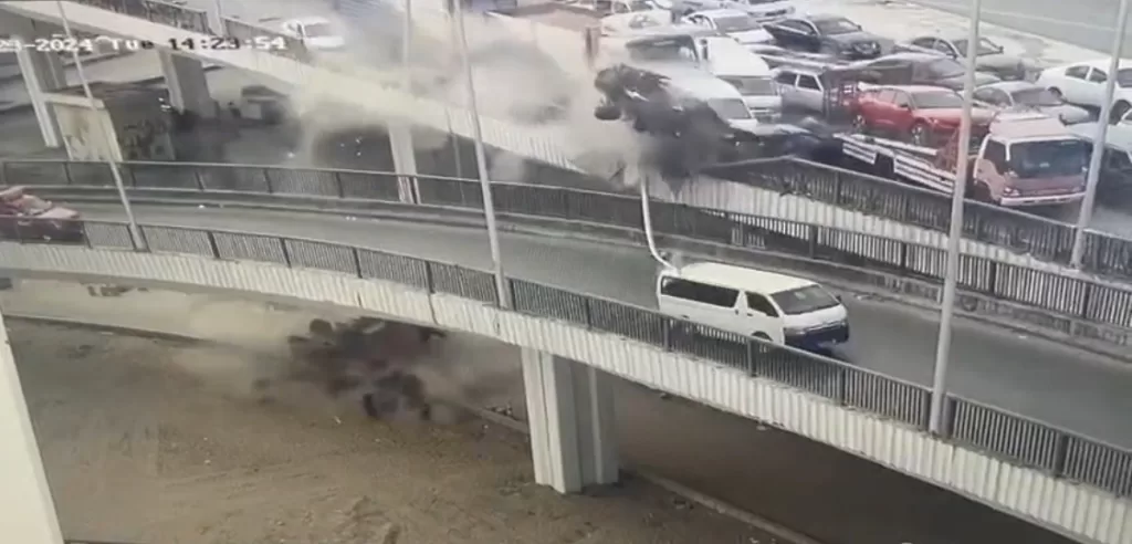 بينما تبدو المنطقة المحيطة بمكان الحادث أعلى الطريق الدائري على خرائط الملاحة تعاني من الازدحام حتى الآن بنسبة تصل لحد الكثافة المرورية، حيث تسبب الحادث في تهشم حاجز الكوبري إثر سقوط السيارات.