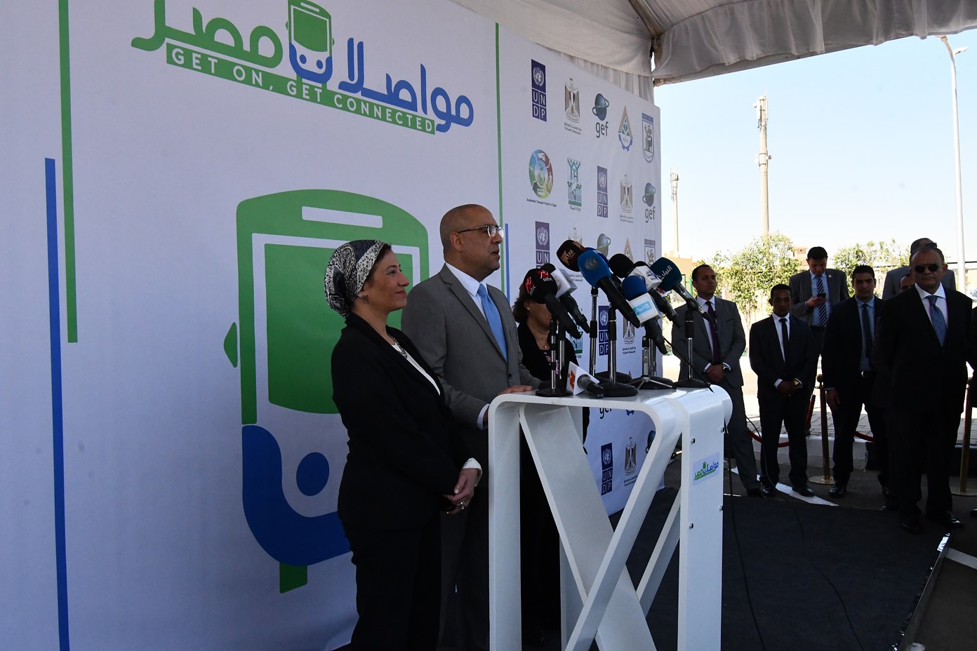 افتتح الدكتور عاصم الجزار، وزير الإسكان والمرافق والمجتمعات العمرانية، والدكتورة ياسمين فؤاد، وزيرة البيئة، مشروع النقل المستدام، لإنشاء 7 خطوط أتوبيس نقل عام حديثة فائقة الجودة تابعة لشركة مواصلات مصر ، تربط مدينتى 6 أكتوبر، والشيخ زايد، بمحطة مترو جامعة القاهرة بمحافظة الجيزة، وذلك بحضور نائب محافظ الجيزة، وقيادات الوزارتين، وهيئة المجتمعات العمرانية الجديدة، والسيدة راندا أبو الحسن، الممثل المقيم ببرنامج الأمم المتحدة الإنمائي، وممثلي الجهات المعنية.