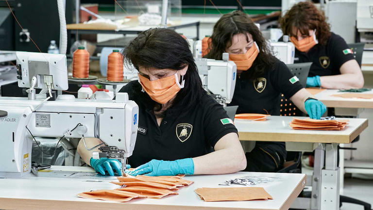 نشرت شركة لامبورجيني الإيطالية مجموعة من اللقطات، للعاملين بها أثناء صناعتهم لكمامات للوقاية، هذه اللقطات التي نشرتها الشركة الإيطالية، وظهرت بها مجموعة من موظفيها بقسم التصميمات، خلال جلوسهم على ماكينات الخياطة لصناعة الكمامات.