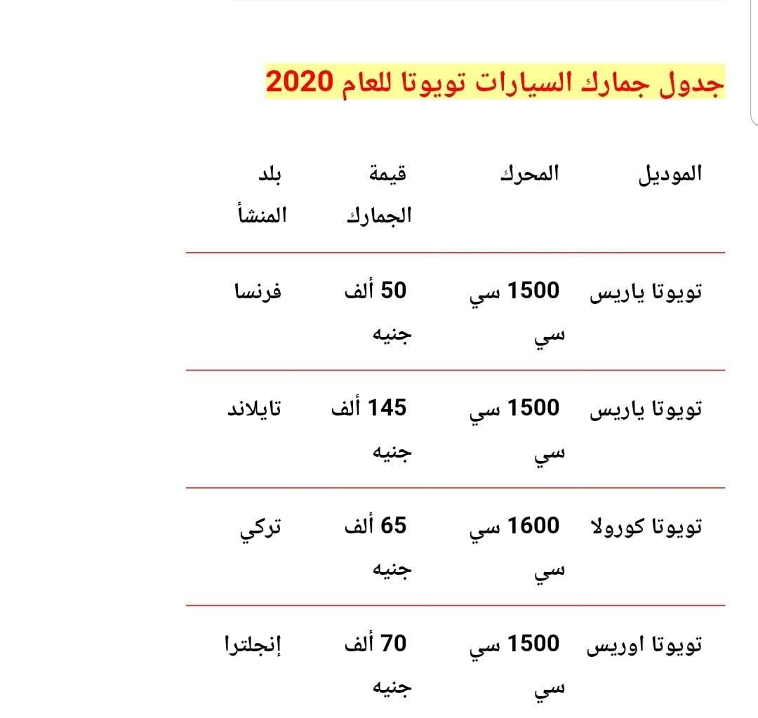تعرف على قيمة الرسوم الجمركية لـ 12 ماركة في مصر