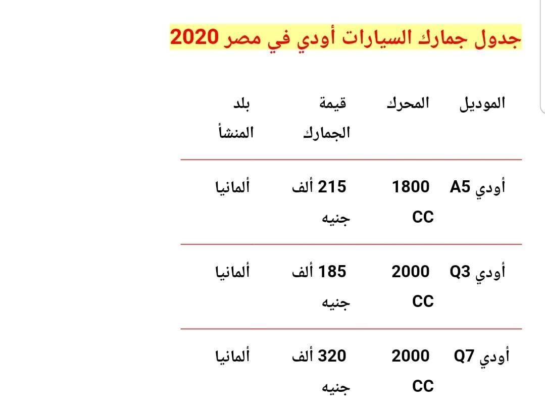 ونشرت الشركة قيمة الرسوم التي تدفع على السيارات الأوروبية التي تستورد في مصر في الفترة الحالية بعد إلغاء الجمارك عليها و التي تشمل رسوم التنمية و القيمة المضافة بواقع 19% من سعر السيارة بدون الجمارك التي تم إلغائها و تشمل الجداول التي نشرتها جداول لـ سيارات BMW و مرسيدس و أوبل و أودي و فولكس فاجن و رينو و بيجو و فيات و سكودا و نيسان المصنعة في أوروبا و غيرهم.