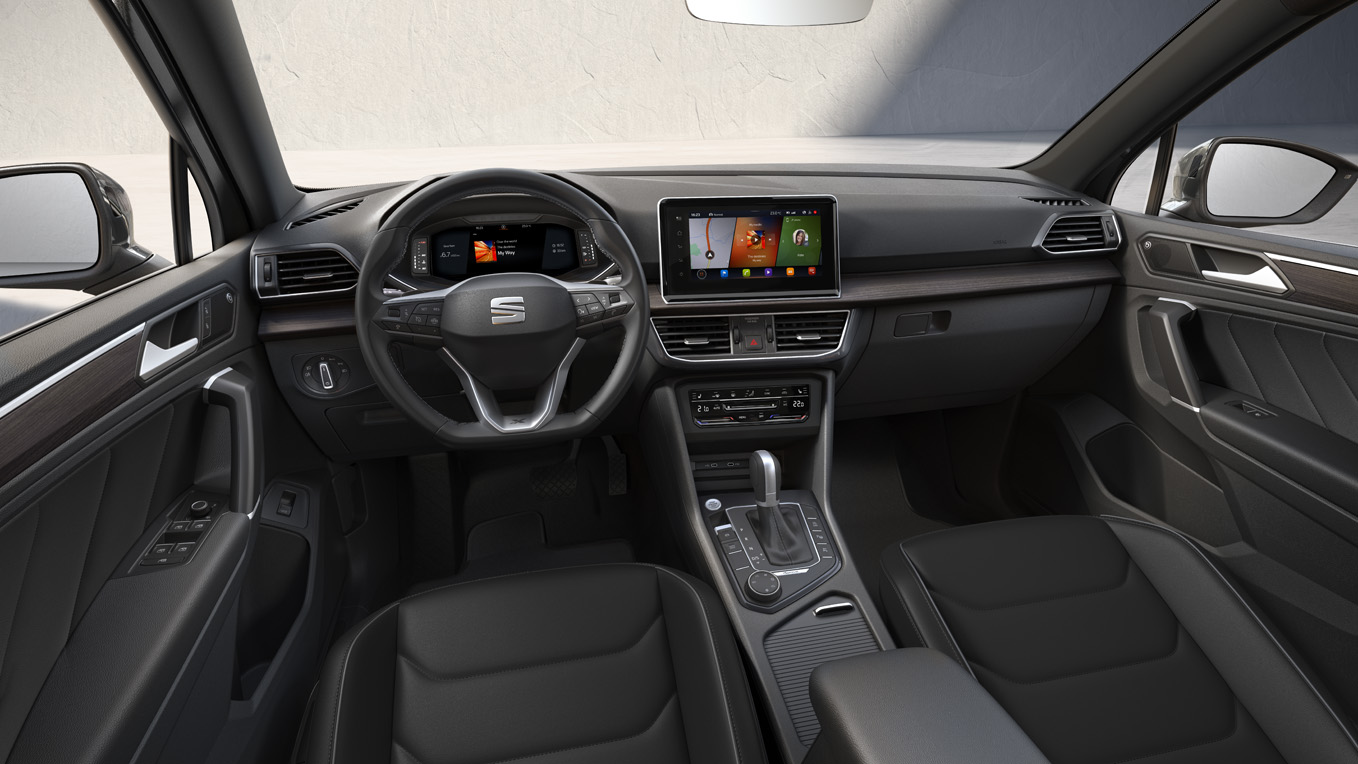 ورغم الخطوط الخارجية ذات التصميم الرياضي الجريء، فإن المقصورة الداخلية للطراز “سيات تاراكو” تستعين بمكوّنات فخمة ذات جودة عالية وتقنيات متطوِّرة. تأتي الفئتان Style وStyle Plus بمقاعد فخمة مزودة بخامة ألكانترا سوداء، بخلاف مساند الرأس التي يُمكن ضبطها بأربعة إتجاهات مختلفة، والطاولة القابلة للطيّ خلف المقاعد الأمامية، و يتوافر أيضاً نظام SEAT Full Link لاتصال الهواتف الذكية بالنظام المعلوماتي للسيارة والذي يتوافق مع أنظمة “Apple CarPlay” و”Android Auto” و”Mirror Link”، وتقنية البلوتوث لإجراء المكالمات الهاتفية لاسلكيًا، وحسّاسات الأمطار والأضواء، بالإضافة إلى شاشة النظام المعلوماتي الترفيهي قياس ٨.٢ بوصة تعمل باللمس، ولوحة العدّادات الرقمية SEAT Digital Cockpit، وصندوق قفّازات بأضواء LED وخاصية التبريد، ونظام التحكّم بالأوامر الصوتية، وغيرها من التجهيزات الفخمة.