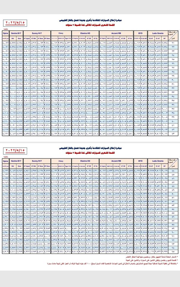 جاءت الأقساط الشهرية لمدة الـ 7 سنوات على سيارات بي واي دي بنحو 3.561 جنيه للفئة العمرية 21 عاما، أما عن أعلى قسط شهري وصل 4.477 جنيه للفئة العمرية 65 سنة.