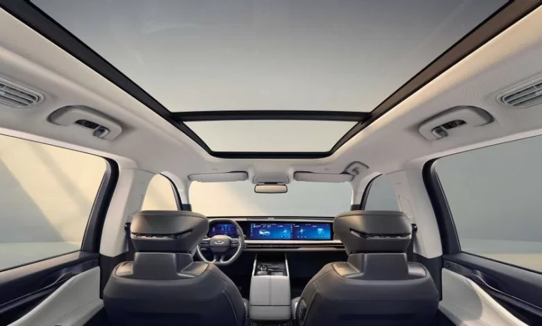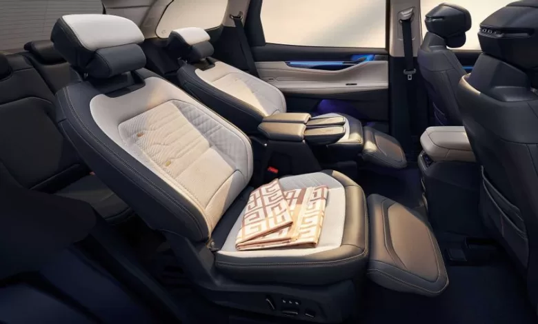 أما من الداخل فزودت السيارة بثلاثة صفوف من المقاعد، وشاشة عرض ضخمة بقياس 27 بوصة تعمل باللمس، بالإضافة إلى لوحة العدادات الرقمية بقياس 12.3 بوصة، ونظام صوتي من طراز Bang & Olufsen، وسقف بانوراما، مع أكثر من 20 نظام من أنظمة القيادة المساعدة.