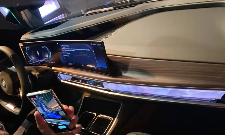 وعرضت الشركة نسختين من سيارات بي إم دبليو THE7؛ الكهربائية وسيارة تقليدية ذات محرك احتراق داخلي.