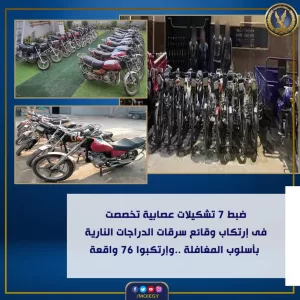 كشفت وزارة الداخلية عبر صفحتها الرسمية على موقع التواصل الاجتماعي «فيس بوك» تفاصيل ضبط 7 تشكيلات عصابية تخصصت في سرقة الدراجات النارية بأسلوب المغافلة.
