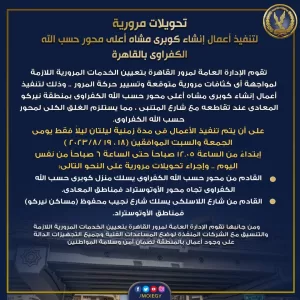 تحويلات مرورية مع غلق محور حسب الله الكفراوي