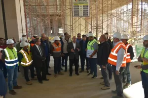 بدأت الجولة بمتابعة معدلات تنفيذ وصلة المسار من محطة السخنة وحتى ميناء العين السخنة بطول حوالي 6 كم، وهي وصلة الربط مع مشروع الخط الأول من شبكة القطار السريع لخدمة نقل البضائع من وإلى الميناء عن طريق هذه الشبكة.