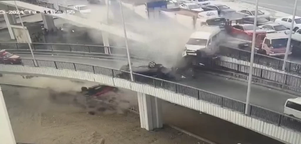 على مدار الساعات القليلة الماضية أثار فيديو متداول على صفحات مواقع التواصل الاجتماعي الرعب، حيث رصد الفيديو خلال 26 ثانية حادثاً مروعا بالطريق الدائري أعلى محور المريوطية أطاحت فيه شاحنة نقل “ تريلا “ بعدد 8 سيارات.