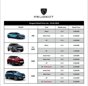 القائمة السعرية لسيارات بيجو لشهر مارس 2024