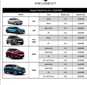 أما بالنسبة لأسعار السيارة بيجو 301 فاختفت من القائمة السعرية المرسلة من الشركة إلى شبكة موزعيها والتي من المقرر أن يتم تطبيقها من يوم 25 مارس 2024.