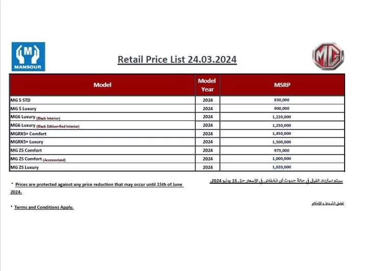 وأعلنت شركة المنصور للسيارات قائمة جديدة لأسعار سيارات إم جي المطروحة في السوق المحلية، بعد انخفاض أسعارها بمختلف طرازاتها وفئاتها بقيم تفاوتت ما بين 170 ألف ووصلت إلى 260 ألف جنيه.
