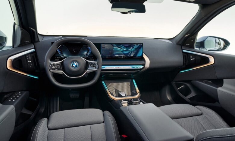 ومن الداخل جمعت المقصورة بين الفخامة والوظائف العملية؛ بدءاً من الشاشة المقوسة التي تجمع بين شاشة المعلومات قياس 12.3 بوصة وشاشة التحكم والترفيه بقياس 14.9 بوصة، لتحتل ثلثي المساحة الأمامية ويحيطها شريط الإضاءة المثلث الجوانب بألوان متباينة تعزز المظهر الرياضي، ويدعمها نظام المعلومات والترفيه iDrive 9 الجديد من BMW، والذي أطلقته شركة صناعة السيارات لأول مرة على سيارة BMW X1 2024، والذي يسمح بالوصول المريح إلى الوظائف الأكثر استخداما للسائق دون الحاجة إلى البحث في القوائم الفرعية.