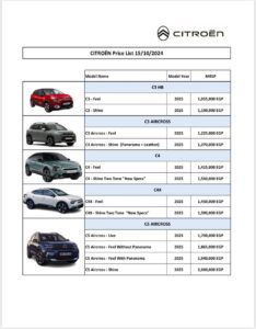 أخطر الوكيل المحلي لعلامة ستروين الفرنسية بالسوق المحلي شبكة الموزعين القائمة السعرية لموديلات عام 2025 المتاحة بالأسواق خلال شهر أكتوبر الجاري.
