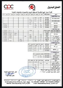 وجاءت أسعار زيوت التعاون للبترول وفقا لقائمة الأسعار التي أخطرت بها الشركة بيها موزعيها في الأسواق، كما يلي: