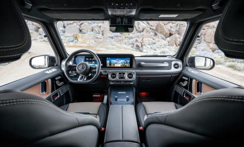 أما المقصورة الداخلية للسيارة مرسيدس – AMG G 63 فتجمع بين الفخامة والتكنولوجيا المتطورة. حيث تضم نظام المعلومات الترفيهي MBUX، المدهوم بشاشات عرض تعمل باللمس قياس 12.3 بوصة. مع القدرة على توصيل الهواتف الذكية. بالإضافة لخيارات راحة متنوعة مثل حامل أكواب بتحكم حراري، وشحن لاسلكي، ونظام ترفيه MBUX متطور للمقاعد الخلفية.