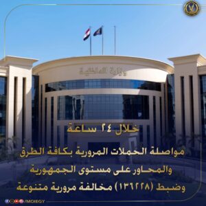 في إطار جهود وزارة الداخلية ممثلة في الإدارة العامة للمرور، من خلال تكثيف الحملات المرورية على كافة الطرق والميادين لتسيير الحركة المرورية وتحقيق الانضباط المروري بالبلاد، وكذا الحد من وقوع الحوادث على الطرق، رصدت المخالفات المرورية التي ارتكبها قائدي المركبات على مختلف الطرق بمختلف أنحاء الجمهورية.