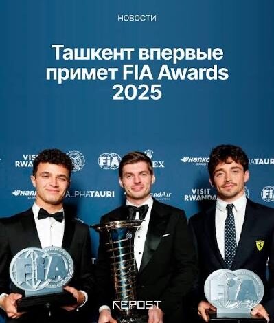 يُقام حفل جوائز الاتحاد الدولى للسيارات (FIA) لعام 2025 بالتعاون مع حكومة أوزبكستان والاتحاد الوطنى لرياضة السيارات والكارتينج فى أوزبكستان (NAFKU)، وهو عضو فى الاتحاد الدولى للسيارات فى طشقند.