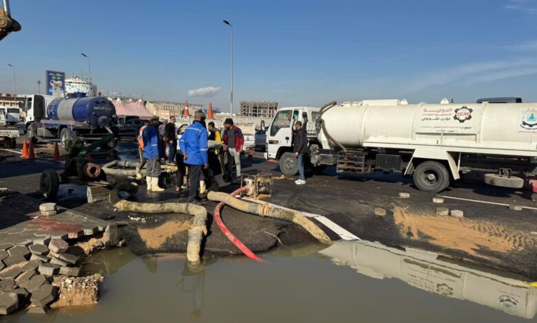 انفجار ماسورة مياه في شارع التسعين وجهاز المدينة يتدخل فورا