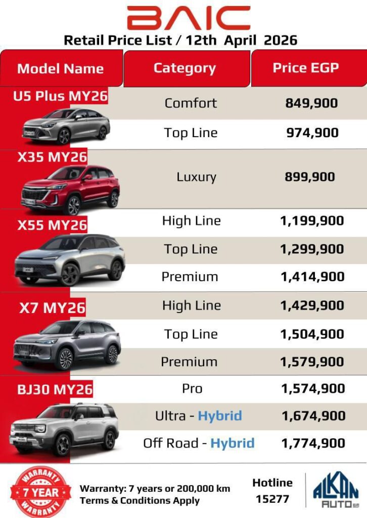 أقرت شركة ألكان أوتو، وكيل علامة بايك الصينية في مصر، زيادة سعرية جديدة على سيارات بايك المطروحة في السوق المحلية، لتكون هي الزيادة الثانية خلال أقل من أسبوعين.