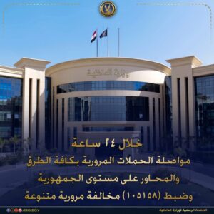 أسفرت الحملات المرورية المكثفة التي شنتها أجهزة وزارة الداخلية المصرية على مختلف الطرق والمحاور على مستوى الجمهورية عن ضبط 105 آلاف و158 مخالفة مرورية متنوعة خلال 24 ساعة، في إطار جهودها المستمرة لتحقيق الانضباط المروري والحد من الحوادث.