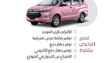 السعودية تُحدد شروط سيارة الأجرة العائلية من بينها اللون وردي