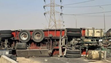 الطريق الأوسطي يشهد حادث تصادم سيارتي نقل